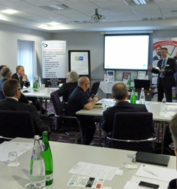 The photo shows Chris Trevor presenting a session on the new Real Time Information changes to the way that employers have to process payroll. Other topics included John Wright explaining how a Limited Company can save your business tax. Emerson Patton from ActionCoach presented 6 steps to improving business performance.