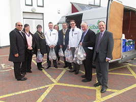 It is estimated that this contribution will provide meals and toiletries to over 1600 local families in need this Christmas. The sponsors of the evening, which included Stoten Gillam, helped load the food on to the Foodbank van. Chris Trevor is pictured with representatives from the other sponsors.